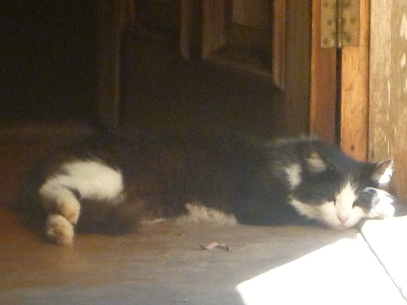 And then there's this! Both of them! I put down a nice fresh tablecloth on the end of the bench on Sunday for our church morning tea & the cats promptly took over! Later I removed the tablecloth & put down an old towel instead because if they insist on sleeping there @ least it needn't be on the good stuff but OT was really put out & informed me he hadn't built a nice kitchen for the cats! *sigh* They live here too. And as anyone knows who owns cats, they are persistent. Very.